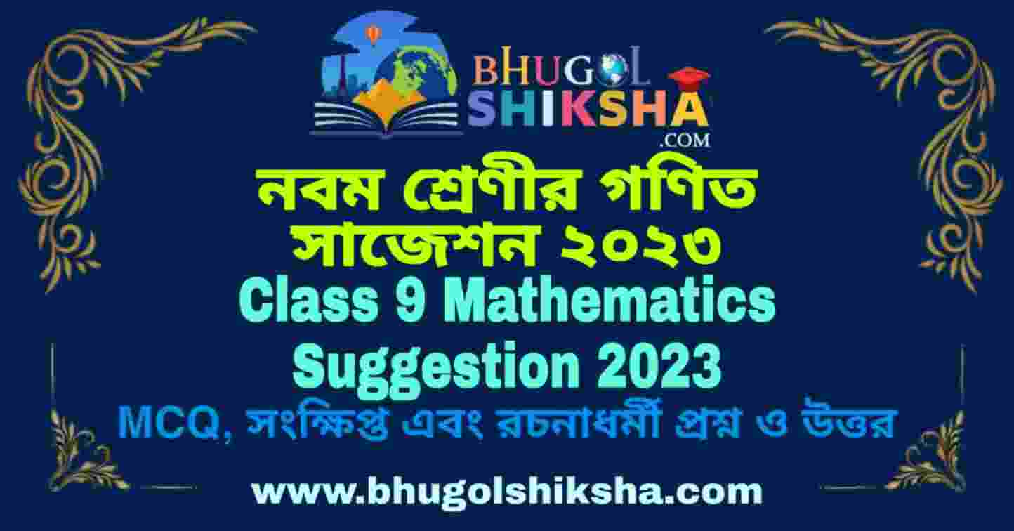 নবম শ্রেণীর  গণিত পরীক্ষা 2023 (Class 9 2023 / WB Class 9 2023 / MP Exam 2023 / West Bengal Board of Secondary Education – WBBSE Class 9 Exam 2023 / Class 9 Class 9th / Class IX / Class 9 Pariksha 2023 ) এবং বিভিন্ন চাকরির (WBCS, WBSSC, RAIL, PSC, DEFENCE) পরীক্ষায় এখান থেকে প্রশ্ন অবশ্যম্ভাবী । সে কথা মাথায় রেখে BhugolShiksha.com এর পক্ষ থেকে নবম শ্রেণীর (নবম শ্রেণী) গণিত পরীক্ষা প্রস্তুতিমূলক প্রশ্নোত্তর এবং সাজেশন (Class 9 Mathematics Suggestion / West Bengal Board of Secondary Education – WBBSE Mathematics Suggestion / Class 9 Class 9th Mathematics Suggestion 2023 / Class IX Mathematics Suggestion / Class 9 Pariksha Mathematics Suggestion / Mathematics Class 9 Exam Guide / MCQ , Short , Descriptive  Type Question and Answer / Class 9 Mathematics Suggestion 2023 FREE PDF Download) উপস্থাপনের প্রচেষ্টা করা হলাে। ছাত্রছাত্রী, পরীক্ষার্থীদের উপকারেলাগলে, আমাদের প্রয়াস  নবম শ্রেণীর গণিত পরীক্ষা 2023 / নবম শ্রেণী গণিত পরীক্ষা 2023 প্রস্তুতিমূলক প্রশ্নোত্তর এবং নবম শ্রেণীর গণিত সাজেশন ২০২৩ / পশ্চিমবঙ্গ নবম শ্রেণীর গণিত সাজেশন ২০২৩ / নবম শ্রেণী গণিত সাজেশন ২০২৩ (Class 9 Mathematics Suggestion 2023 / West Bengal Board of Secondary Education Class 9 Mathematics Suggestion 2023 / WBBSE Class 9th Mathematics Suggestion 2023 / Class Nine Class 9th Mathematics Suggestion 2023 / Class IX Mathematics Suggestion 2023 / Class 9 Pariksha Mathematics Suggestion 2023 / Class 9 Mathematics Exam Guide 2023 / Class 9 Mathematics MCQ , Short , Descriptive  Type Question and Answer 2023 / Class 9 Mathematics Suggestion 2023 FREE PDF Download) সফল হবে।